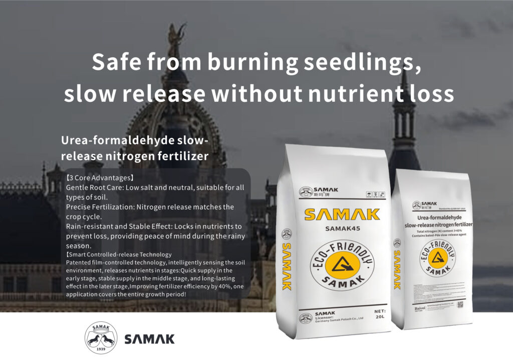 Samak urea – formaldehyde slow – release fertilizer. Safe for seedlings, slow – releases nutrients without loss. Gentle on roots, rain – resistant, with controlled – release tech. Optimizes soil, sustains growth. Your crop’s nutrient – retaining partner by BVA.